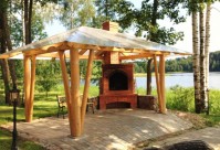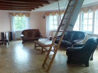 Pirmajā stāvā liela svinību zāle ar virtuvi (ledusskapis, elektriskā plīts u.c), garderobe, WC kā pirmajā stāvā tā arī otrajā.